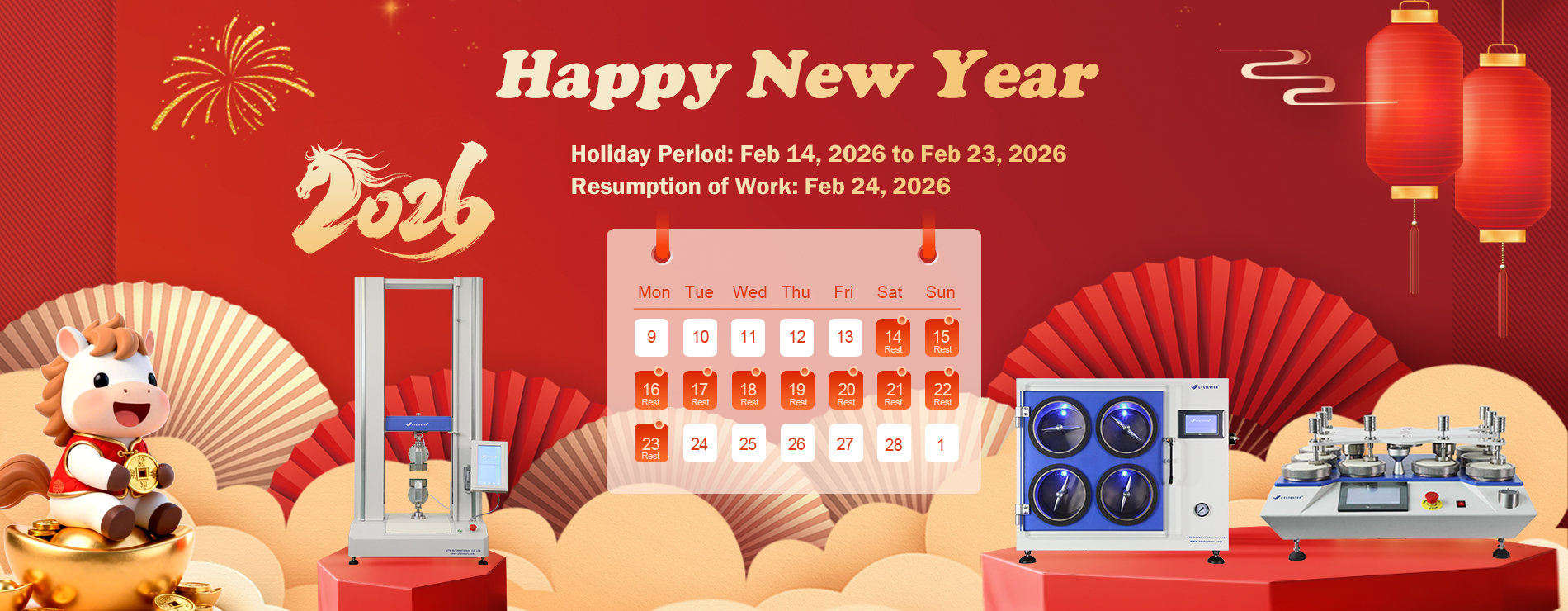 Tensile strength tester, Environmental Chamber, Salt Spray Tester, etc.